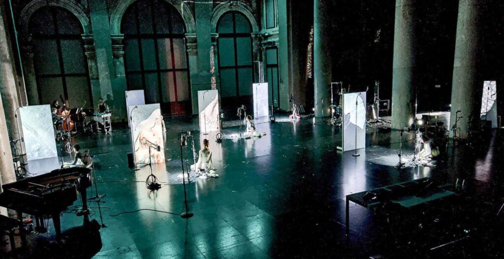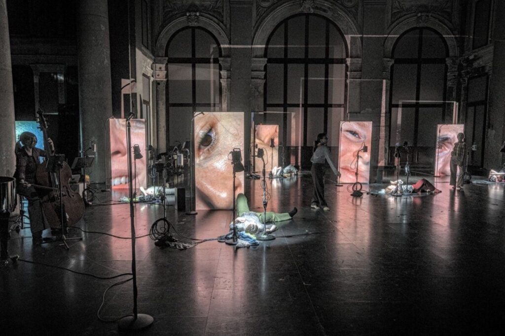 Reinhard Fuchs, artistic director PHACE, about the production: Coal mine birds is a feverish journey into darkness, where sound, bodies, and objects blend into unstable hybrids: Dido’s Lamento sinks chromatically downward, breaking apart into glissandi, pizzicati, and bottleneck cries. Memories flare like strobes, light becomes both narcotic and intoxication – a club, a grave, a stage of shadows. Voices, bodies, samples, bursts of rock, piano crashes, field recordings: everything shatters, everything starts again. A tribute, a distortion, a transformation – wild, sarcastic, intimate. Music theater as a burning mine, as a frozen glacier, as a lament tearing itself apart.